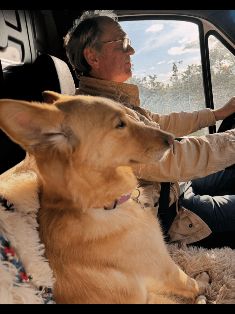 De volgende ochtend reden mijn broer, Josie (m’n hond) en ik richting Zuid-Italië. Een beetje onwennig nog, want de bus was erg zwaarbeladen en bij iedere bocht helde de bovenkant van de bus over, alsof ie ieder moment kon omvallen. Josie zat als een prinsesje tussen ons in op de voorstoelen, die niet te verstellen waren, dus het werd twee dagen lang rechtop zitten in een zeer oncomfortabele houding.